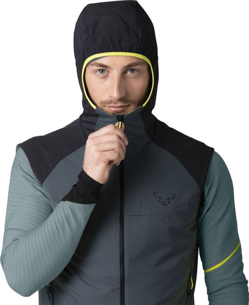 "Technical, lightweight and very breathable: The Mezzalama Polartecu00ae Alphau00ae insulation vest for men is the first choice for high-intensity activitiesu00e4ten and competitionsu00e4mpfe. With the reworked classic from the DYNAFIT ski touring collection, you are always one step ahead of the others and optimally equipped to get the best out of yourself in the cold season, whether you are skiing, ski touring or mountaineering. When the going gets really tough, the Mezzalama Polartecu00ae Alphau00ae vest is the perfect choice. It is perfect as a lightweight thermal layer over a base layer or fleece. The high-performance vest reliably protects you from the cold and also scores points for its high breathability so you don't overheat. The wind and water-repellent outer material prevents the wind chill effect, while the Polartecu00u00ae Alphau00u00ae insulation optimally regulates your body temperature by releasing excess heat to the outside. At the back, where the rucksack rests, the insulation has been left out and instead equipped with a perforated, elastic insert for additional breathability. The vest has a close fit and features stretch inserts for a perfect fit without slipping, even during intensive movement. Two front pockets with zippers provide storage space for small items such as a cell phone or food. A close-fitting hood for additional protection in adverse conditions rounds off the overall package. Mezzalama Polartecu00ae Alphau00ae vest u2013 Hu00f6highest performance for intensive exertion."