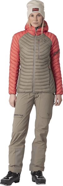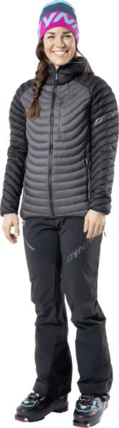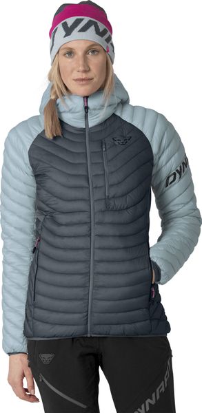 "Warmth with minimal weight: The Radical Down RDS hooded jacket for women scores with water-repellent down on every ski tour. The down jacket is a popular classic in the DYNAFIT ski touring collection that no wardrobe should be without. It keeps you reliably warm on cold days and impresses with the highest level of comfort. This is ensured by high-quality RDS-certified down with a fill power of 800 cuin and a downfeatherratio of 95/5. Down is known for its excellent insulating properties, low weight and small pack size. The only weakness of down is and remains its susceptibility to moisture. When down gets wet, it collapses and loses its insulating properties. This is precisely why the high-quality down of the Radical Down hooded jacket has been impregnated with DOWNTEKu2122. Thanks to the water-repellent DOWNTEKu2122 treatment, the down retains its loft even when exposed to moisture, keeping you reliably warm. In addition, the down dries faster and can be cleaned in the washing machine without compromising on quality. Additional weather protection is provided by the lightweight nylonouter down material, which is windand water-repellent. Stretchinserts under the arms improve breathabilityu00e4t, temperature regulation and freedom of movement. Elasticated cuffs at the hem and sleeves keep the jacket in place and prevent cold air from penetrating. Heat escapes. The two pockets on the front and one chest pocket offer storage space for small items and keep your hands warm at the summit. Thanks to its small pack size, the down jacket fits in any backpack and is always with you on tour. With its athletic cut, the Radical Down hooded jacket not only cuts a fine figure on ski tours, but can also be worn perfectly for mountaineering or everyday wear in the city. Radical Down hooded jacket u2013 Always warm, popular everywhereu2013."