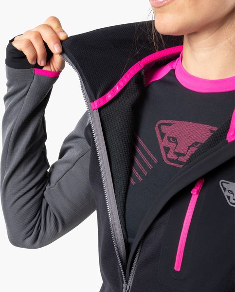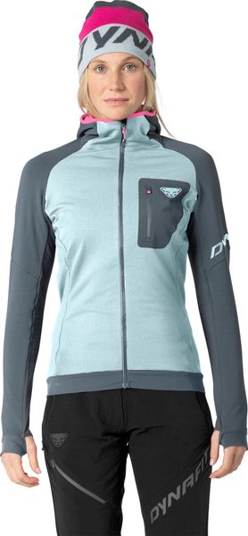 "The Radical Polartecu00u00ae W Jacket from Dynafit is the ideal choice for women who don't want to compromise on comfort and functionality on ski tours or in everyday life. This technical fleece jacket impresses as a mid-layer thanks to the innovative Polartecu00e Power Gridu2122 material. The inside efficiently transports moisture away from the body, while the outside impresses with its robustness and quick-drying properties. The soft waffle structure on the inside of the jacket ensures outstanding insulation properties while making it lightweight and easy to stow away"