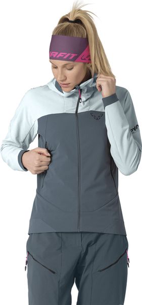 "The Ridge Thermal Hoody for women by Dynafit is the perfect companion for demanding ski tours on cold days. This hooded jacket combines fleececomfort with a durable outer shell to provide optimal protection and comfort. The innovative construction ensures optimum regulation of body temperature so that you can perform at your best on the mountain. The fluffy double fabric is pleasantly warm and soft against the skin and protects against chills, while the high breathability prevents heat from building up during intense exertion."