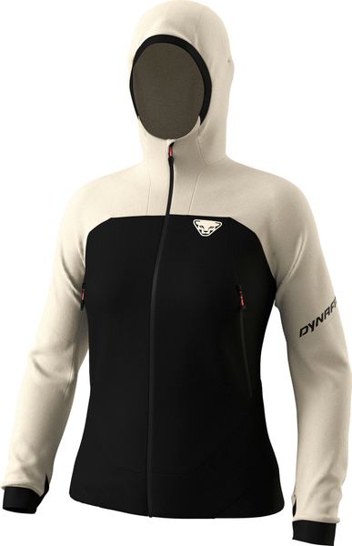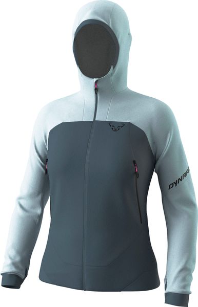 "The Ridge Thermal Hoody for women by Dynafit is the perfect companion for demanding ski tours on cold days. This hooded jacket combines fleececomfort with a durable outer shell to provide optimal protection and comfort. The innovative construction ensures optimum regulation of body temperature so that you can perform at your best on the mountain. The fluffy double fabric is pleasantly warm and soft against the skin and protects against chills, while the high breathability prevents heat from building up during intense exertion."