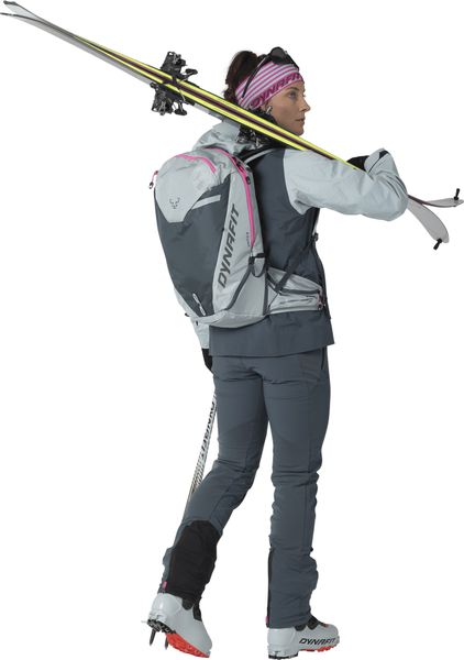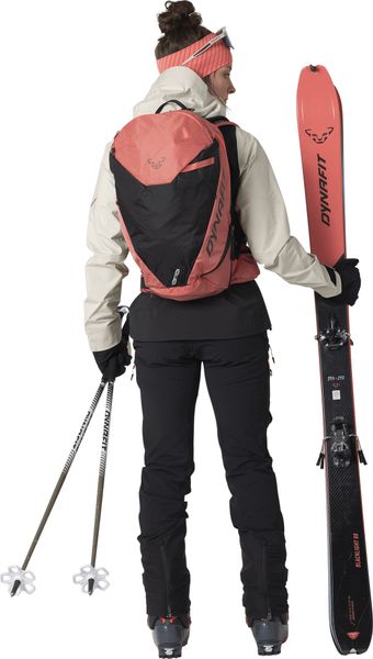 "The Speed 22 Backpack W from Dynafit is the ideal companion for dynamic outdoor activities such as ski touring, speed hiking and running. With a breathable carrying system specially developed for women, this backpack not only offers optimum comfort, but also a perfect fit on the back. The large main compartment with zipper and the separate crampon compartment ensure excellent organization and quick access to your equipment, while the robust material provides reliable protection even when in contact with rocks."