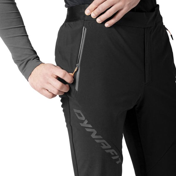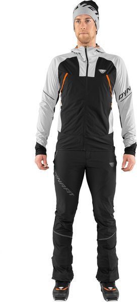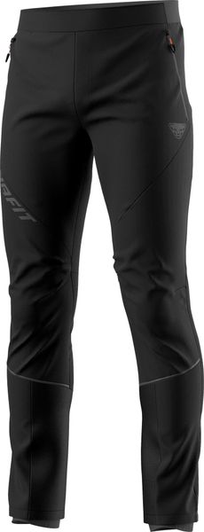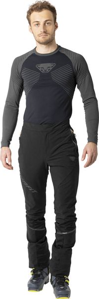 "The Speed Dynastretch Pants M from Dynafit are the ideal choice for ski touring enthusiasts who are looking for highly functional and slim-fitting pants. These versatile trousers feature a clever material mix that has been specially developed for fast ski tours. Thanks to the hybrid construction, the trousers offer an optimal combination of freedom of movement and protection from the elements. A windand water-repellent softshell material protects on the front, while a ventilated, breathable stretch material on the back ensures excellent ventilation."
