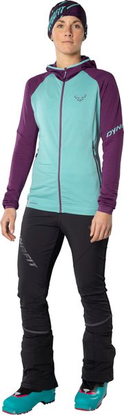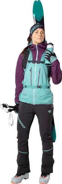 "The Speed Dynastretch Pants W from Dynafit are the ideal choice for passionate ski tourers and skiers who value functionality and comfort. These trousers have been specially developed for demanding tours and offer a perfect blend of protection and freedom of movement thanks to their hybrid construction. The front is made of a wind and water-repellent, elastic softshell material that protects you from the elements, while the back is made of breathable, brushed stretch material that provides excellent ventilation."