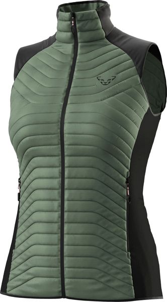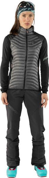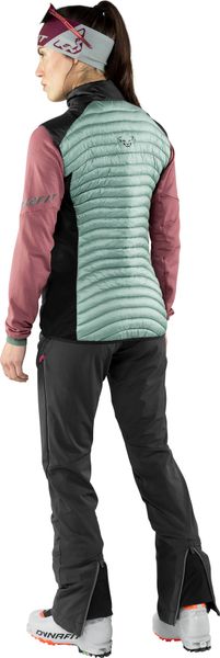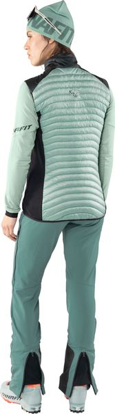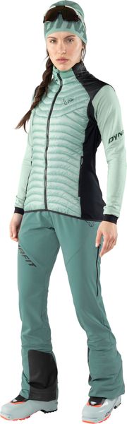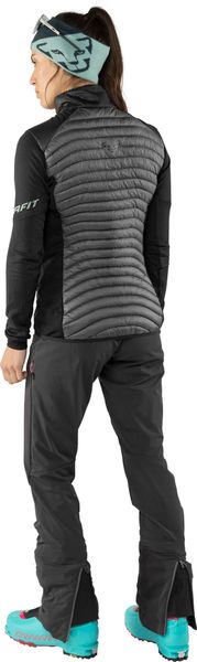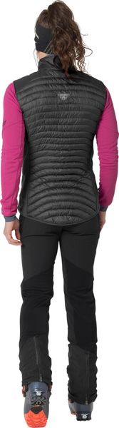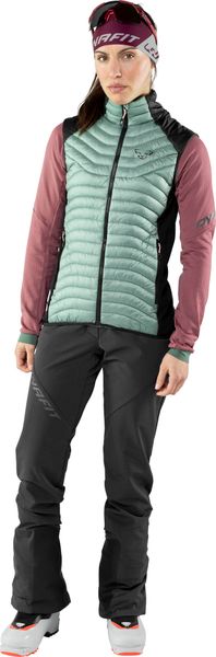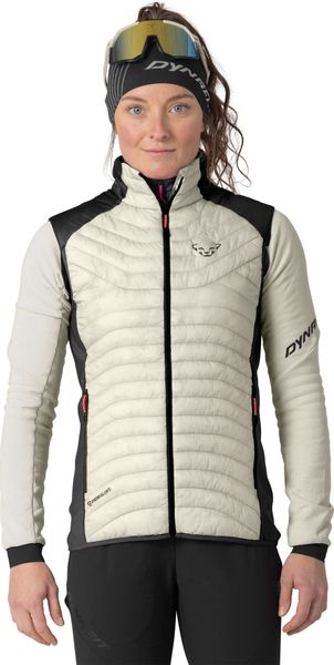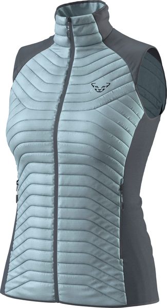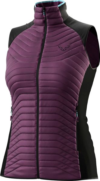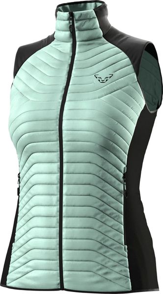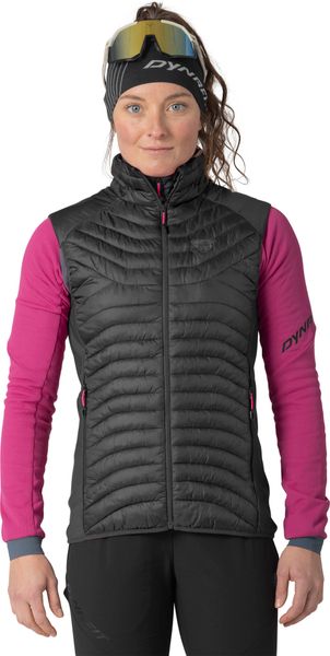 "The Speed Insulation Vest W from Dynafit is the ideal companion for anyone who enjoys being out in nature, whether ski touring or mountaineering. Thanks to its innovative filling made from 100% recycled synthetic down, this versatile women's vest offers reliable warmth without the disadvantages of traditional down. Even when wet, the thermal performance is retained and care is particularly easy thanks to the machine washability."