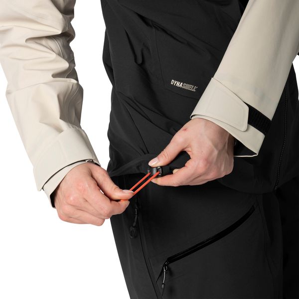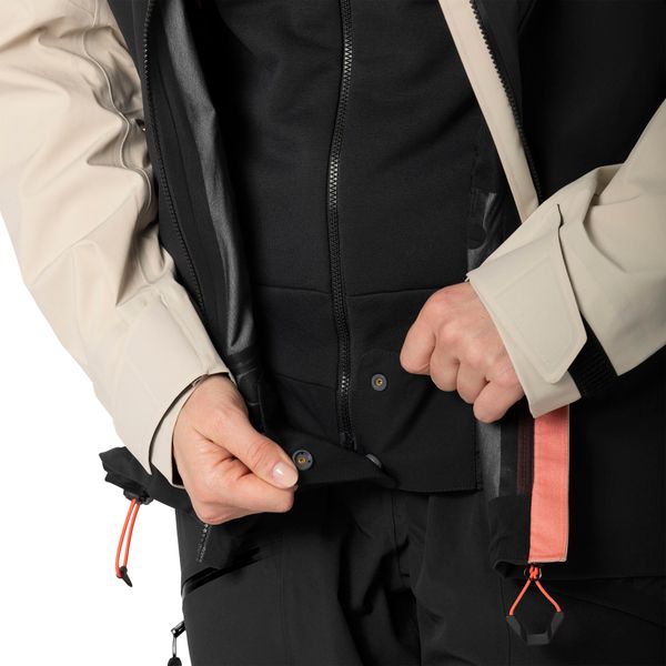 "The practical features include two front pockets, a small sleeve pocket for your ski pass and internal mesh pockets. The zippers under the arms provide additional ventilation. The integrated snow skirt can be attached to the Tigard 3L Stretch trousers if required to provide even more protection from penetrating snow. With this jacket, you are perfectly equipped to enjoy your ski tours to the full."