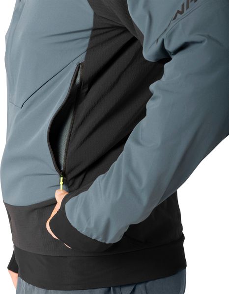 Elasticated cuffs, hem and hood ensure a secure fit and prevent slipping during movement. The hybrid construction with woven fleece inserts on the sides offers maximum freedom of movement, which is particularly beneficial during dynamic activities"