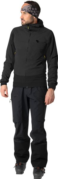 "The Tigard Alpha Direct jacket from Dynafit is the ideal companion for demanding ski tours and mountain activities in cold weather. This innovative insulating jacket combines the properties of fleece, softshell and insulating clothing in one to ensure optimum warmth and breathability. Thanks to the Polartec Alpha Direct lining made from recycled materials, the jacket offers excellent temperature regulation, which prevents overheating and at the same time guarantees a pleasant feel against the skin."