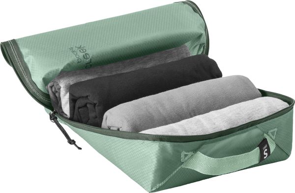 With a volume of 3 liters, size S is ideal for stowing Tshirts, shorts and light shirts. The slightly transparent fabric allows you to quickly see the contents, while the practical handle on the top guarantees easy handling. The zipper pullers, inspired by climbing ropes, are not only robust but also easy to grip, which makes handling even easier.