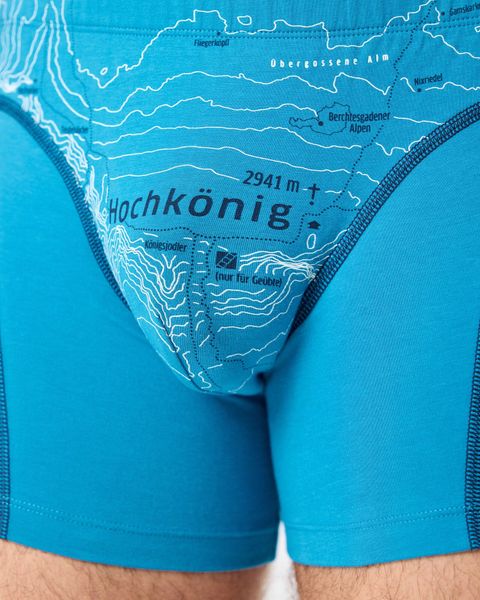 """The ""high-ku00f6nig ""peacock ""blue ""boxer ""shorts ""from """A ""Beautiful ""Spot ""of ""Earth" ""are ""the ""ideal ""companion ""for ""all ""adventurers, ""whether ""hiking, ""mountaineering ""or ""on ""alpine ""tours. ""Made ""from ""high-quality ""wool, ""they ""offer ""an ""optimum ""fit ""and ""maximum ""freedom ""of ""movement ""thanks ""to ""their ""elasticated ""slim-fit ""cut ""and ""extra-long ""leg. ""The ""flat ""seams ""ensure ""a ""high ""level ""of ""comfort, ""while ""the ""low-cut ""fit ""is ""snug ""and ""comfortable. ""These ""boxer ""shorts ""are ""not ""only ""functional, ""but ""also ""sustainable:"" ""they ""are ""made ""from ""GOTS-certified ""organiccotton ""and ""are ""produced ""fairly ""in ""the ""EU. ""With ""a ""material ""thickness ""of ""180 ""g/mu00b2, ""they ""are ""robust ""and ""durable. ""Designed ""in ""Austria, ""the ""paper ""packaging ""is ""environmentally ""friendly. ""Whether ""you're ""choosing ""the ""direct ""ascent ""to ""the ""top ""or ""exploring ""exciting ""side ""routes, ""you'll ""be ""well ""equipped ""with ""these ""boxer ""shorts."