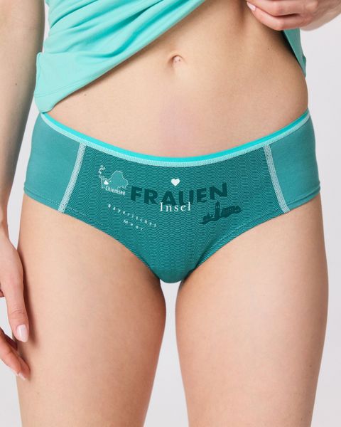 """Immerse ""yourself ""in ""the ""feeling ""of ""tranquillity ""and ""sensuality ""with ""the ""Fraueninsel ""Patinagru00fcn ""hipster ""from ""Ein ""schu00f6ner ""Fleck ""Erde. ""Inspired ""by ""the ""picturesque ""Fraueninsel ""island ""in ""Lake ""Chiemsee, ""this ""women's ""underwear ""combines ""the ""best ""of ""nature ""and ""design. ""Made ""from ""the ""finest ""organic ""cotton ""certified ""to ""GOTS ""standards, ""they ""are ""not ""only ""extremely ""comfortable ""to ""wear, ""but ""also ""offer ""a ""clear ""conscience. ""The ""flat ""seams ""and ""low ""cut ""ensure ""a ""perfect ""fit ""that ""gently ""hugs ""your ""skin, ""while ""the ""material ""thickness ""of ""180 ""g/mu00b2 ""guarantees ""a ""pleasant ""wearing ""comfort."