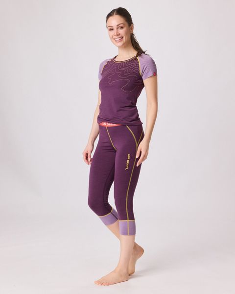 "The short-sleeved Merino Innergebirg shirt in dark lilac is the perfect choice for active women who value comfort and sustainability. Made from mulesing-free merino wool combined with TENCELu2122, this shirt offers exceptional moistureand temperature regulation. This combination of materials not only makes it incredibly soft to wear, but also ensures that you feel comfortable during sporting activities in any season."