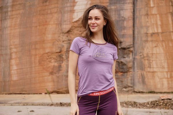 "This short-sleeved merino wool shirt in the color "Wald Knallt Flieder Hell" by "Ein schu00f6ner Fleck Erde" is the epitome of versatility and comfort". Whether as a breezy basic on hot summer days or as a warm layer in winter, this shirt is a must-have for every wardrobe. The combination of mulesing-free merino wool and TENCELu2122 not only makes it comfortable to wear, but also naturally regulates moisture and temperature. This keeps the skin dry and comfortable, regardless of the weather"