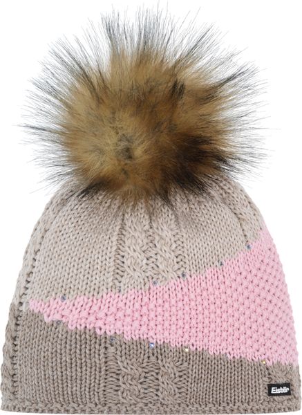 "The Eden Lux Crystal hat from Eisbu00e4r combines stylish design with functional thermal insulation, ideal for all outdoor winter activitiesu00e4. The three-colored textured look and diagonal rows of crystals make this hat a real eye-catcher. The elegant appearance is rounded off by a high-quality faux fur pompom, which adds a luxurious touch."