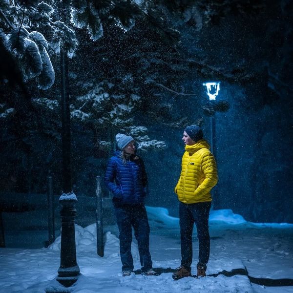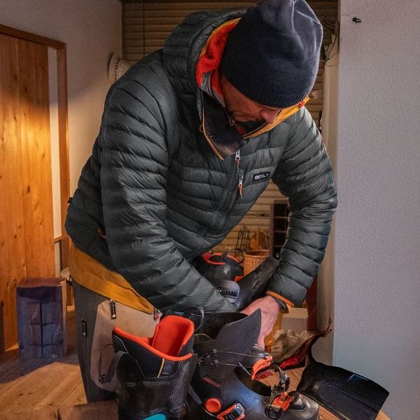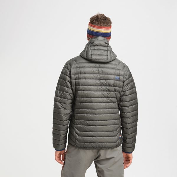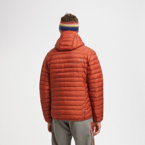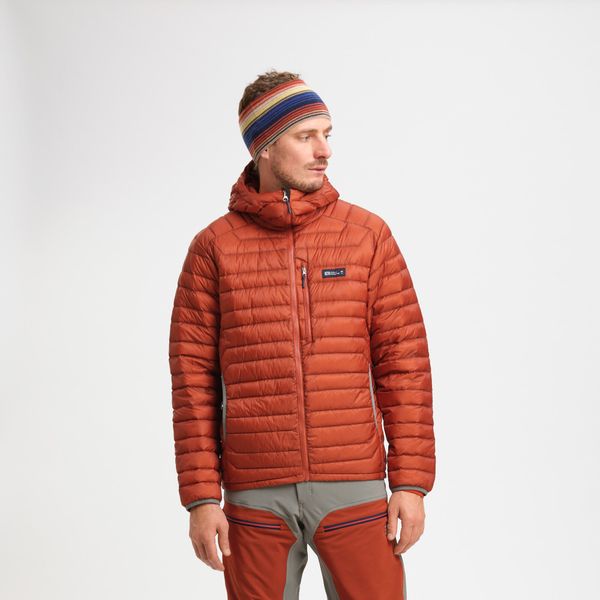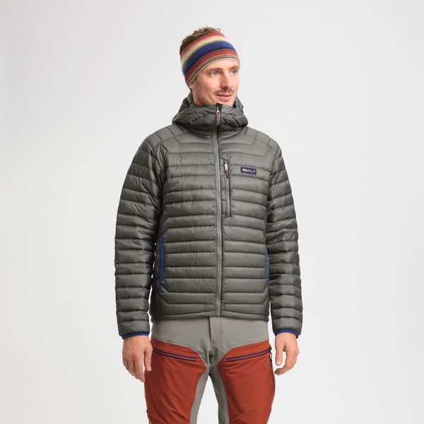 "Lightweight, compressible down jacket with adjustable hood, ideal for ski tours and freeskiing adventures."