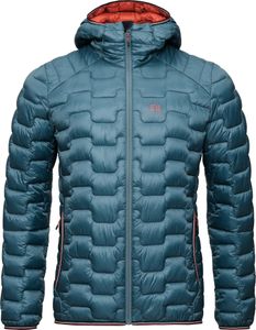 "Lightweight hooded jacket with synthetic down, ideal as an insulating layer for skiers."