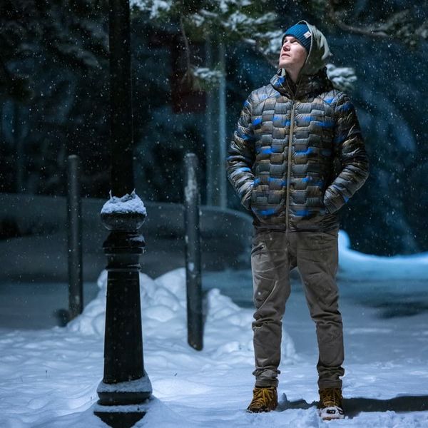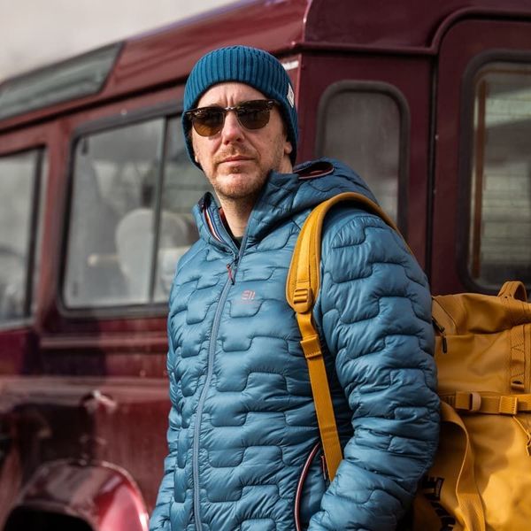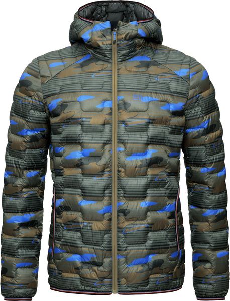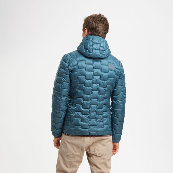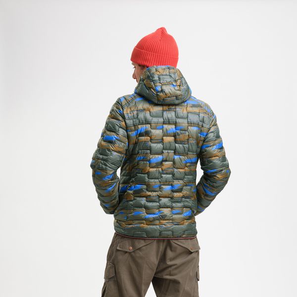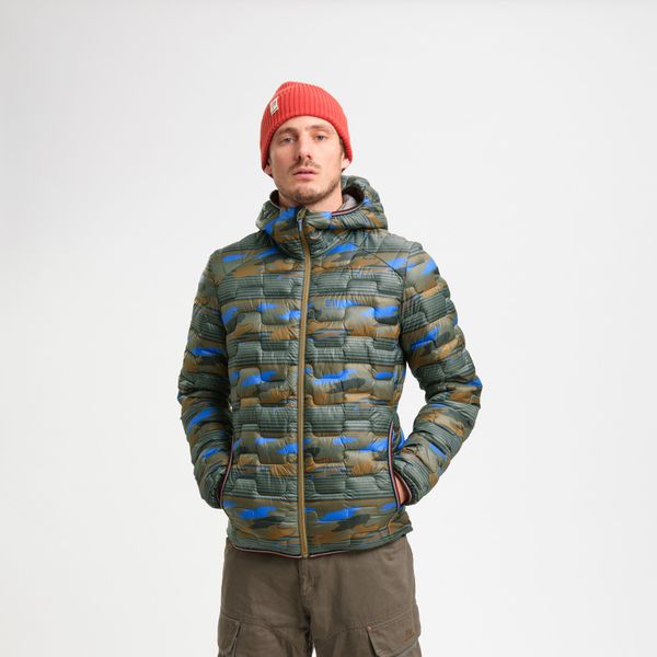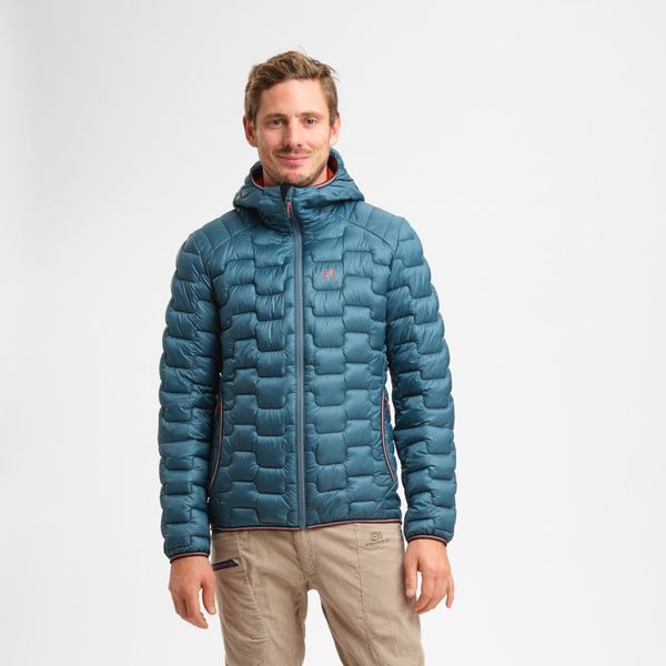 "Lightweight hooded jacket with synthetic down, ideal as an insulating layer for skiers."