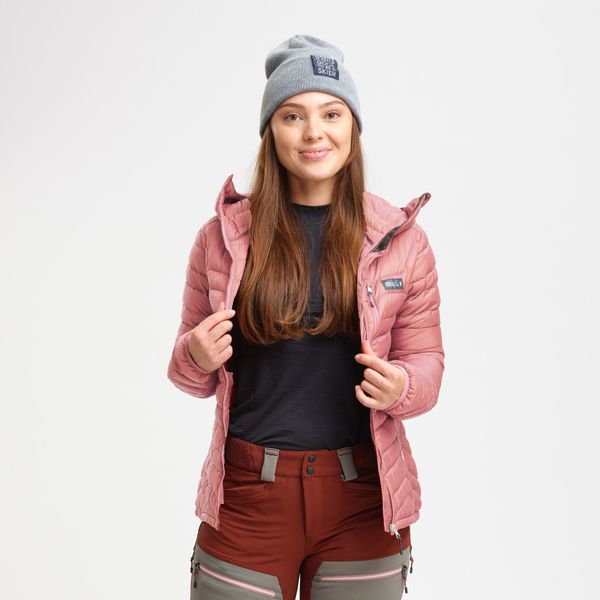 "Lightweight, water-repellent down jacket with adjustable hood for ski touring and freeskiing."