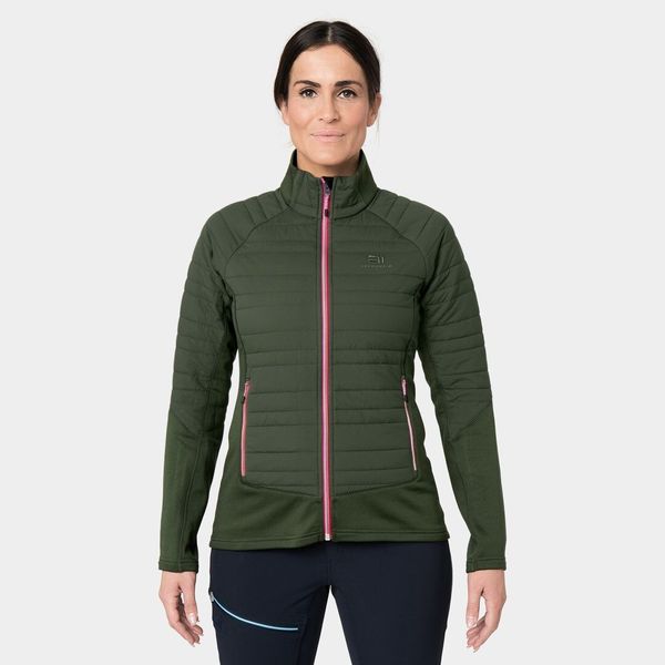 "The Women Fusion Stretch Jacket from Elevenate is the ideal companion for anyone who values comfort and functionality when skiing. This technical mid-layer jacket combines stretch fleece with insulated areas and has been updated for even greater freedom of movement. Thanks to the regular fit, it adapts perfectly to the body without restricting freedom of movement. The water-repellent nylon material ensures that you stay dry in light snow or drizzle"