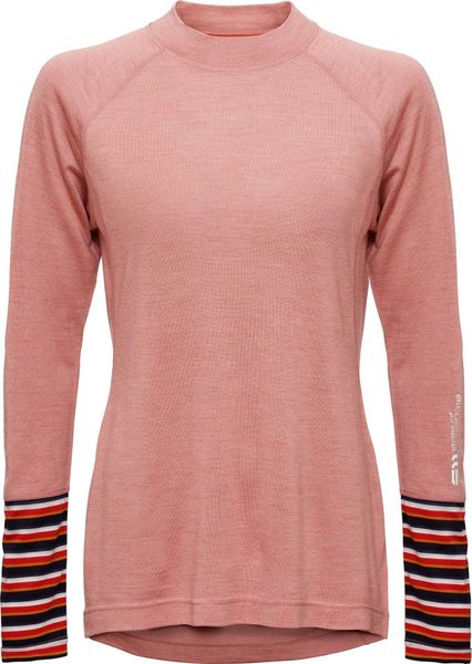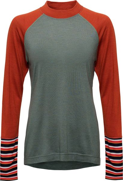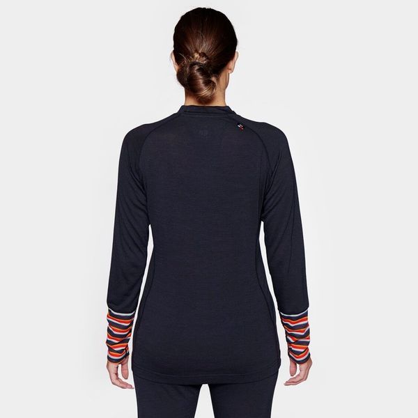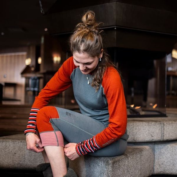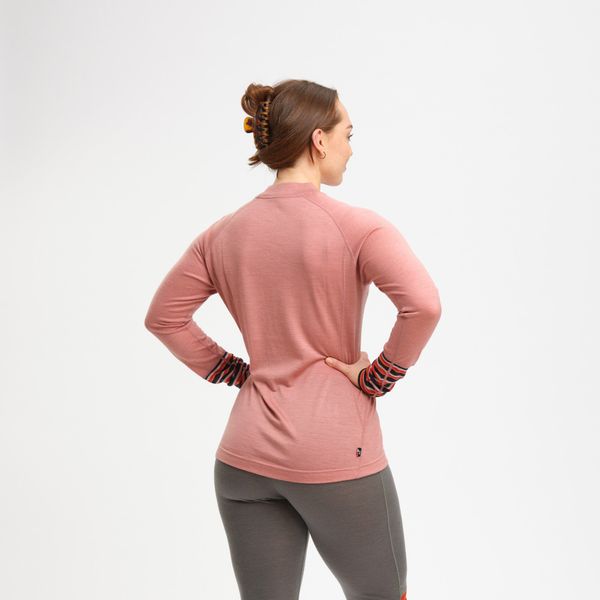 "Functional women's merino wool sweater for skiers that wicks away moisture and offers comfort."