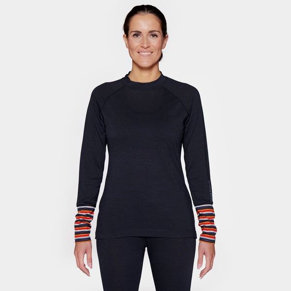 "The moisture-regulating properties of merino wool make the Women Primo Crew the perfect base layer for long days on the slopes. Thanks to the regular fit, the sweater offers a comfortable fit that also provides sufficient freedom of movement for sporty activities. Whether in icy temperatures or mild winter weather, this sweater will always keep you warm and comfortable."