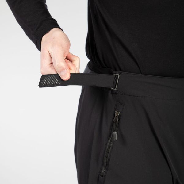 "The pants' water-repellent properties are achieved with a PFC-free, durable and non-toxic finish that protects you from light rain and splashing water. Practical zippered pockets provide secure storage space for small items, while laser-cut elements on the legs improve air circulation. The modern, slim cut offers enough space for knee protectors and, in combination with the waist adjustment via a secure Velcro fastener, ensures a perfect fit"