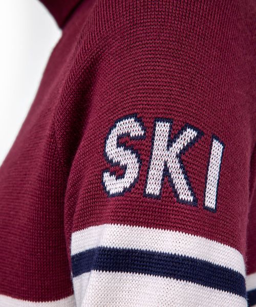 - "Classic ski style": "Retro design with color blocking and horizontal stripes as well as embroidered SKI lettering on the sleeve"