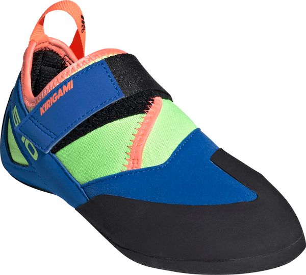 "With the Adidas Marvel Spider-man Five TEN Kirigami climbing shoes, little adventurers become true climbing heroes. Specially designed for children, these shoes are ideal for activities such as hiking and climbing and offer excellent grip on any surface. The synthetic upper material ensures a robust yet flexible fit that optimally supports the foot. The practical Velcro fastener makes them easy to put on and take off, so that the shoes can be perfectly adapted to the needs of little ones. The removable textile insole offers additional comfort and can be easily cleaned if necessary. These climbing shoes are not only functional, but also a real eye-catcher for all young fans thanks to the popular spiderman design."