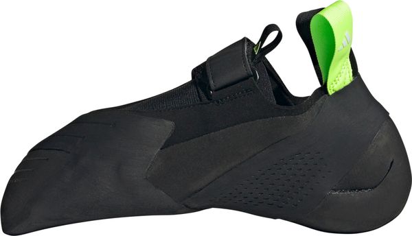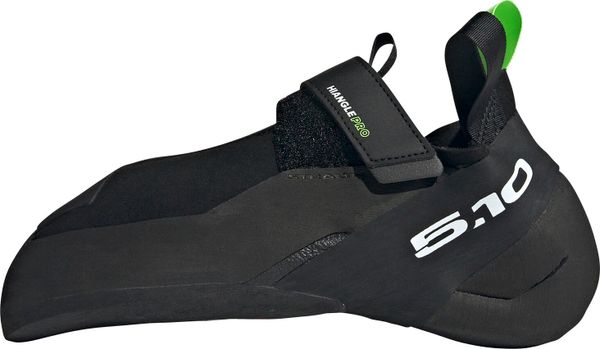 "The Hiangle Pro climbing shoe from Five Ten is the further development of the popular Hiangle model and was specially developed for climbers and boulderers who place the highest demands on their equipment. With its rounded wraparound sole, which encloses the entire toe area, this shoe maximizes the contact area of the rubber and thus offers unbeatable grip even during demanding compression movements. The strong downturn ensures optimum power transmission to small footholds and allows you to master even difficult bouldering routes with confidence."