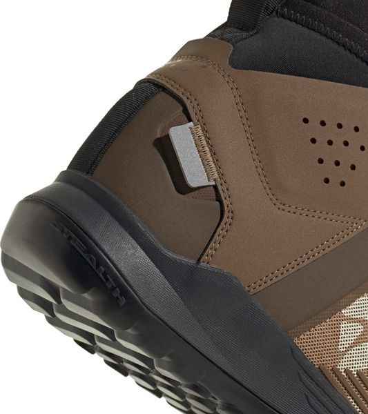 "Experience the ultimate adventure with the Trailcross Mid Pro mountain bike shoes from Five Ten, which have been specially developed for passionate mountain bikers and outdoor enthusiasts. These shoes offer a perfect combination of performance and sustainability. The Stealth Phantom rubber outsole with its unique Dotty tread guarantees excellent control over the pedals, while the structured toe and heel allow for secure steps on uneven terrain."