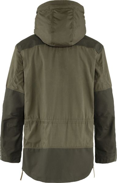 "Made from the hard-wearing and environmentally friendly G-1000 material, which consists of recycled polyester and organic cotton, the anorak offers excellent protection against wind and water. Particularly exposed areas such as the shoulders, sleeves and the extended back hem are made from the more robust G-1000 HeavyDuty. Fju00e4llru00e4ven attaches great importance to sustainability, which is why many leather details are made from leather waste and exposed parts can be easily replaced after years of useu00f6nnen"