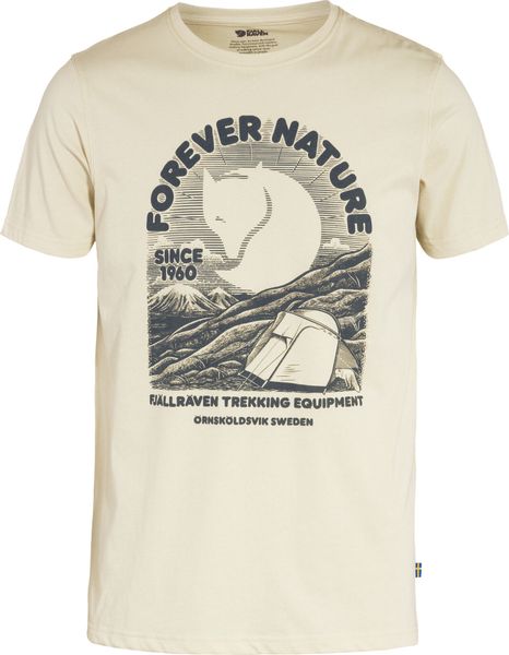Ideal for warm days, the T shirt is characterized by its lightweight and quick-drying properties, making it the perfect choice for outdoor activities or casual leisure outfits. The classic round neckline and short sleeves ensure a timeless look, while the eye-catching Fjällräven print on the front adds a stylish accent.