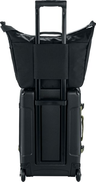 "In addition, the bag has a large front pocket with special compartments for your passport, glasses and pens as well as a key clip to keep your key safe. A side pocket offers space for a water bottle. The luggage pocket on the back is particularly practical, allowing you to slide the bag over the handle of the scooter, making it the perfect travel companion."