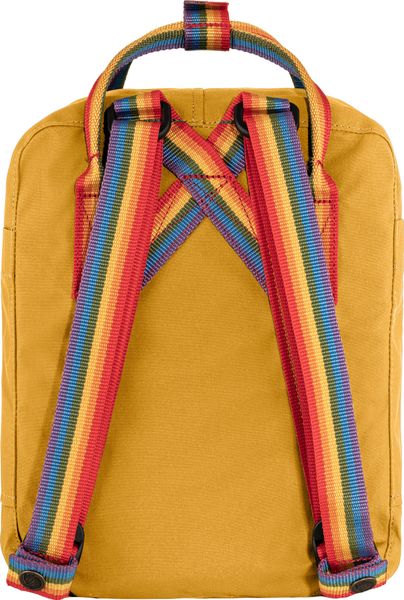 "The Ku00e5nken Rainbow Mini from Fju00e4llru00e4ven is not only a fashion statement, but also an expression of diversity, acceptance and equality. Made from durable, water-repellent Vinylon F fabric, this backpack is the ideal choice for anyone looking for a compact and robust companion. The rainbow colors of the shoulder straps and handles give the classic design a fresh touch and make it a real eye-catcher."