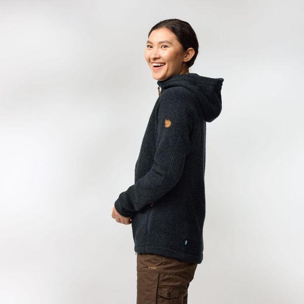 "The Kaitum Fleece W by Fju00e4llru00e4ven is the perfect choice for women who value comfort and functionalityu00e4t. This fleece impresses with its updated fit and is made from an innovative ZQmerino wool blend. This combination of materials combines the temperature-regulating properties of wool with the robustness of polyester, making it the ideal companion for hikes and outdoor activities."