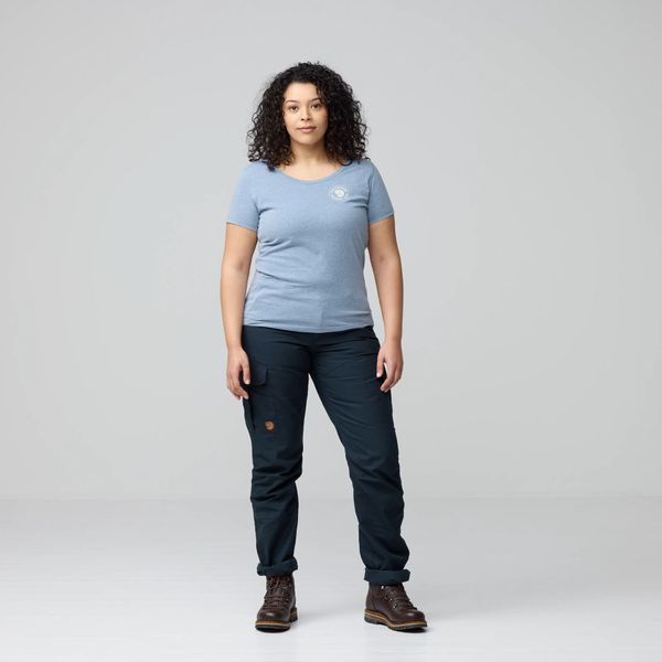 The Karla Pro Trousers Curved W from Fjällräven are the perfect choice for active women who are looking for robust and versatile outdoortrousers. These hard-wearing trekking trousers made from the tried-and-tested G-1000 Silent material not only offer protection from wind and water, but are also very comfortable to wear thanks to their technical cut. With pre-shaped legs and knees, they allow maximum freedom of movement, whether running, sitting or squatting.