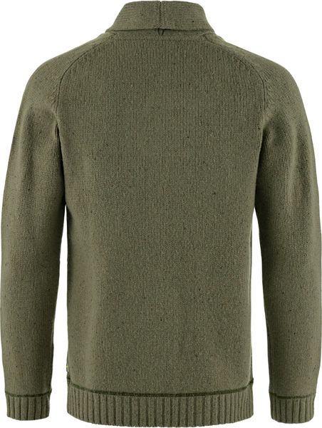 "The Lada Sweater M by Fju00e4llru00e4ven is a stylish knitted sweater made from a high-quality lambswool blend. It stands out with its classic shawl collar and slightly mottled yarn, which gives it a timeless elegance. This sweater is ideal for everyday wear or leisure activities and can be worn perfectly over a shirt. It also offers optimum comfort as a warm mid-layer for walks on chilly autumn or winter days."