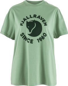 Casual women's T-shirt made of organic cotton with Fjällräven logo print, ideal for outdoor and leisure activities.