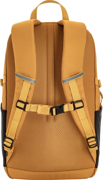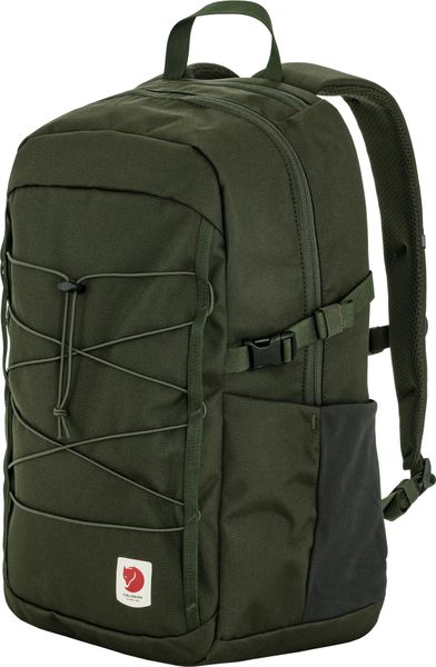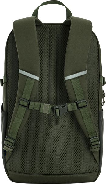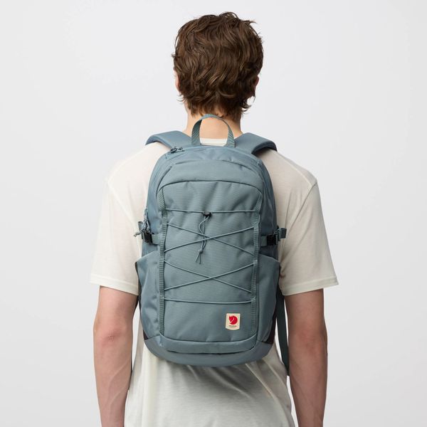 "The Skule 24 by Fju00e4llru00e4ven is a robust and versatile backpack that is ideal for light hiking, everyday use and commuting. Made from durable Oxford 600D recycled polyester with a 1500mm PU coating, it not only offers environmental friendliness but also excellent resistance to the elements. The backpack features a large main compartment with a raised, padded laptop compartment to keep your electronic devices safe. In addition, a zippered-mesh pocket on the inside provides additional organization."