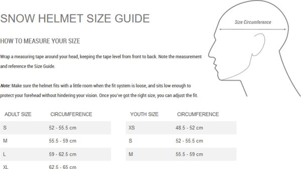 - Sizes: "S 52-55.5cm | M 55.5-59cm | L 59-62.5cm | XL 62.5-65cm"