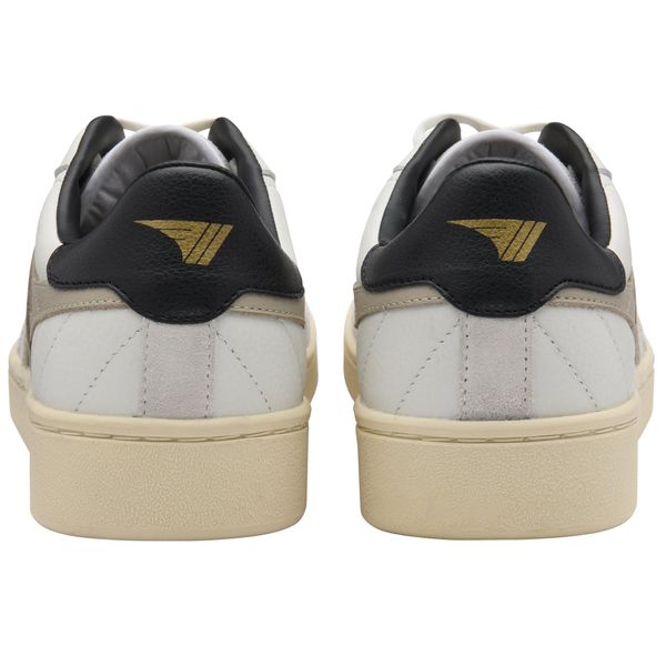 "The Contact Leather sneaker for men by Gola is the perfect combination of traditional courtdesign and modern accents. Inspired by classic sports shoes, this sneaker brings a timeless elegance to your wardrobe. The clean white leather upper is stylishly complemented by a contrasting black heel counter and a bone-colored Gola-Wingflash appliqué. These details create a classic courtlook that will impress both in everyday life and during sports."