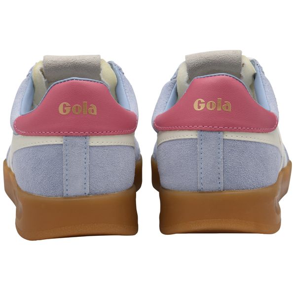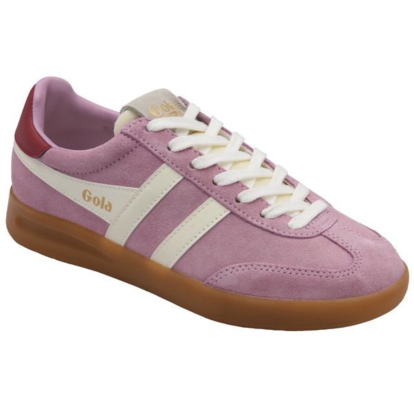 "The Cyclone sneaker for women from Gola brings a breath of fresh air to your shoe collection. These stylish sneakers combine the best of design and functionality. Made from high-quality leather, they not only offer durability, but also keep your feet pleasantly warm on cooler days thanks to their lining. The trendy color combination of green fog, off-white and a touch of candy makes these trainers a real eye-catcher. The design is rounded off with a translucent rubber sole, which not only provides stability but also a modern look. Perfect for anyone who wants to add a fashionable accent while at the same time protecting comfort."