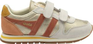 "The sneakers are characterized by their u00fcbergrou00d EVA midsole, which authentically reflects the classic Gola style. The soft metallic-gold upper is complemented by eye-catching accents in orange and sunny yellow, making the shoe a real eye-catcher. These versatile and comfortable sneakers are the ideal choice for girls who value style and comfort."