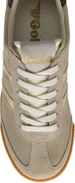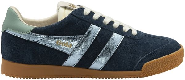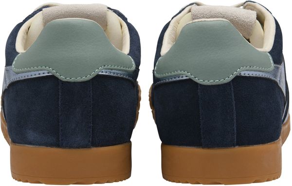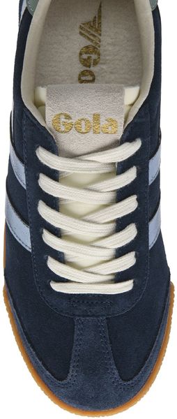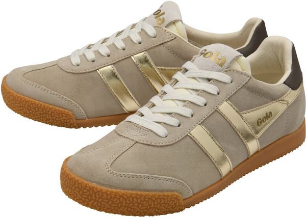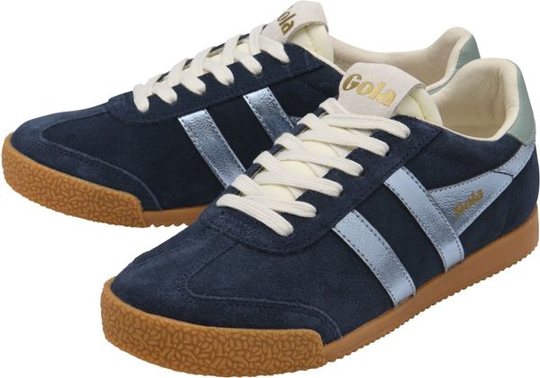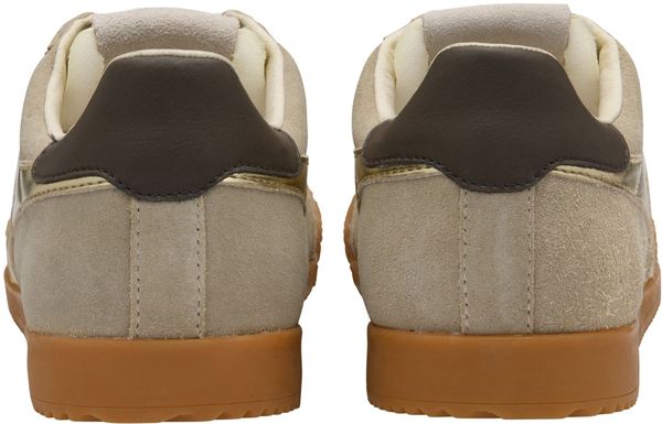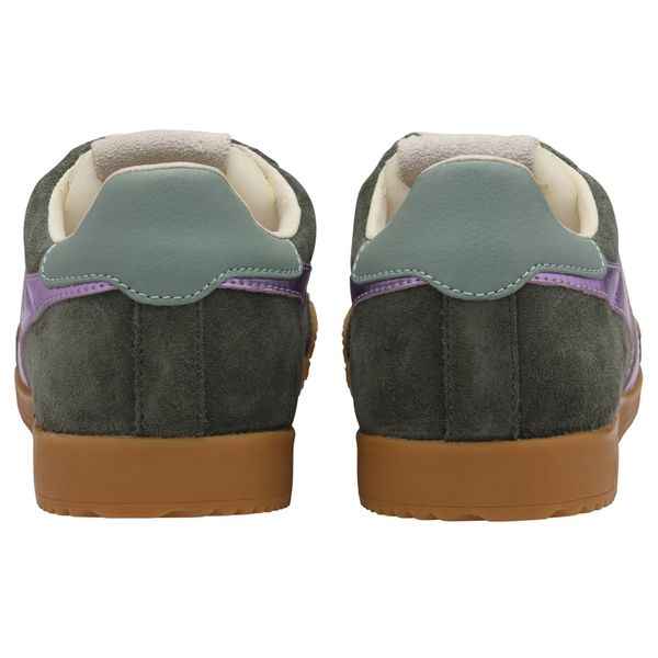 "The Elan Glitz sneaker for women from Gola is the latest addition to the popular Elan family and is a stylish reworking of the iconic Gola Wingflash. This sneaker stands out with its soft metallic red tones, which harmonize perfectly with the pink suede upper. The dark brown heel tab adds an elegant touch to the design and rounds off the opulent color concept"