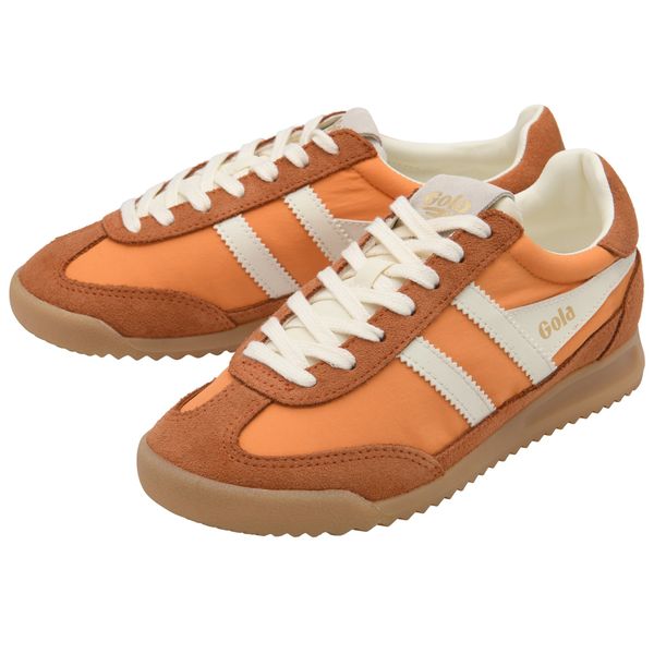 "The Firefly Sneaker Women by Gola is the perfect choice for anyone who wants to spice up their style with a colorful accent. With a vibrant color palette of clementine, moody orange and offwhite, these sneakers make a fashion statement. Specially designed for women, they combine a vintage nylon upper with elegant suede inserts that are not only visually appealing but also add a sophisticated freshness."
