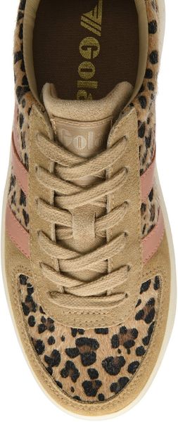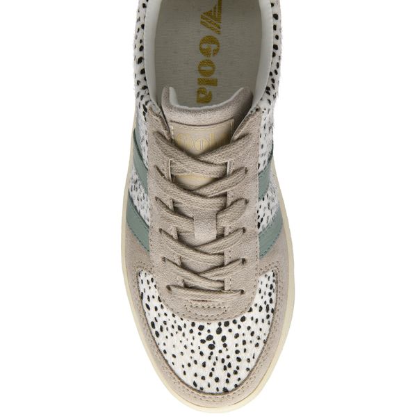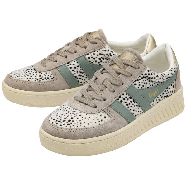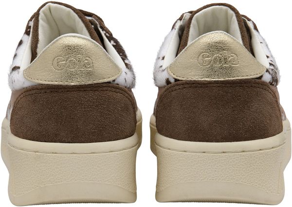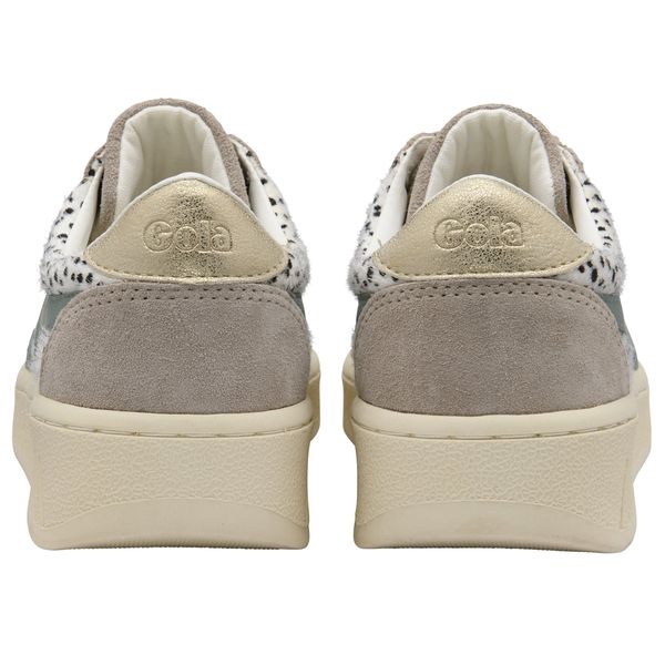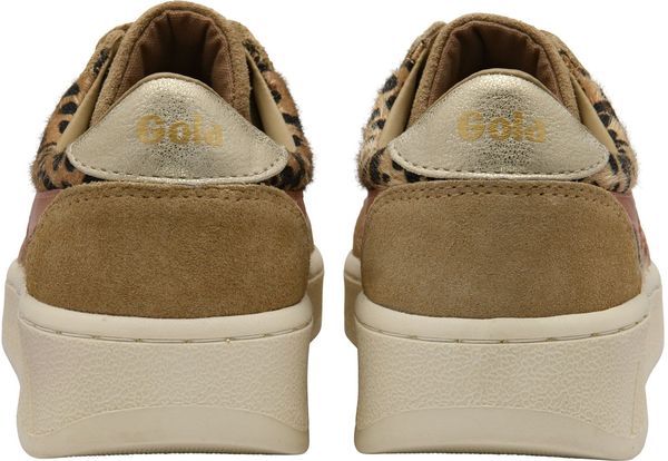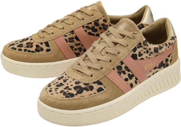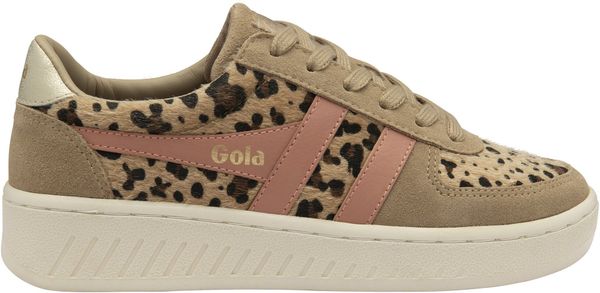 "The Grandslam Savanna sneaker for women by Gola is a fashion statement that brings luxury and style to everyday life. This sneaker combines a fascinating combination of textures and colors, which stands out thanks to the cheetah-inspired pattern on high-quality cowhide leather. The light gray suede panels not only give the shoe visual depth, but also provide additional warmth, making it ideal for cooler days."