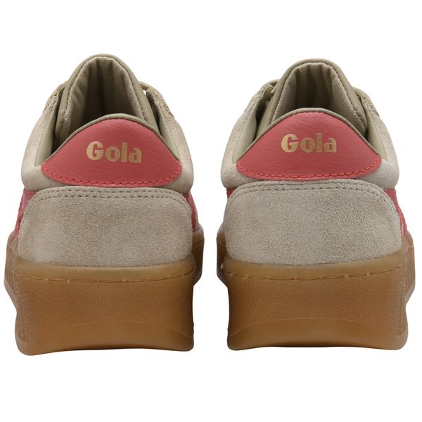 "Discover the timeless charm of the Grandslam Suede sneaker for women by Gola, which is perfect for leisure and everyday wear. This sneaker combines classic court style with modern accents and impresses with its elegant suedeupper material in trendy color variations. The Grandslam Suede Bone/Coral is equipped with a characteristic Gola-side-wingflash and a stylish heel tab, giving it a distinctive look."