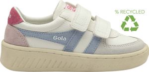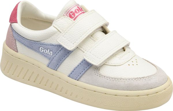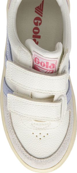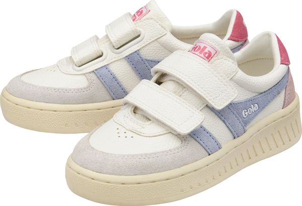 "The Grandslam Trident Strap sneaker for kids by Gola is the perfect combination of style, functionality and sustainability. This white sneaker, accentuated by vibrant surf blue and thimble colors, is not only an eye-catcher, but also offers the highest wearing comfort for the little onesu00fcu00dfe. Thanks to the double Velcro fastener, putting them on and taking them off is child's play, which is particularly beneficial for little ones. The padded and warming properties of the sneakers ensure that feet always stay warm, even on colder days."