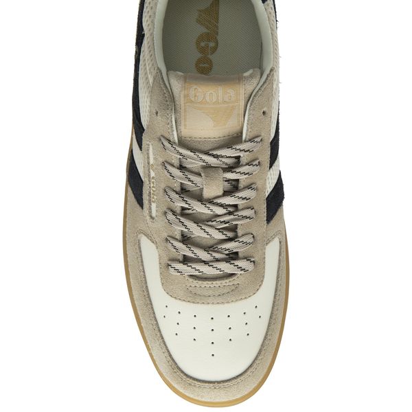"The Gola Hawk '83 sneaker for men is the perfect choice for style-conscious men looking for a modern look with a nostalgic flair. Inspired by the Court-Sport trends of the 80s, this sneaker features an open weave-Mesh upper finished with premium boneand moonlightsuede. The hiking laces and classic rubber sole give the shoe a timeless charm that can be easily integrated into any outfit."