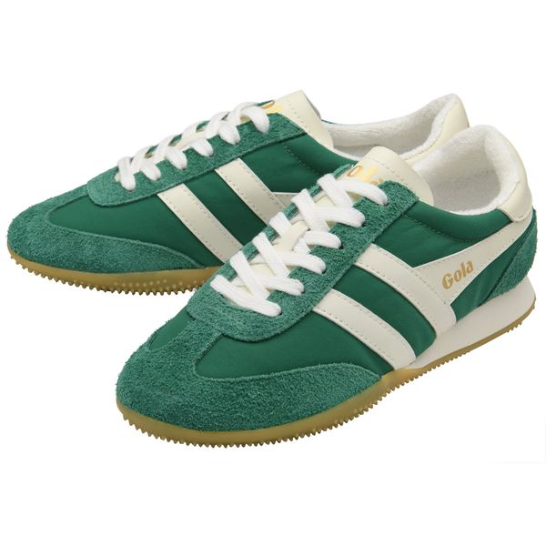 "The Gola Sprinter sneaker for women, first introduced in 1976, combines nostalgic heritage with contemporary style. The current model presents itself in an elegant bone suede and breathable mesh, which not only ensures a stylish look, but also underlines the lightness and flexibility of the shoe. The slim, lightweight sole contributes to a comfortable feel, while the classic wingflash design in offwhite gives the sneaker a distinctive, sporty character. This combination of retro charm and modern functionality makes the Gola Sprinter an indispensable companion for fashion-conscious women who value comfort and style."